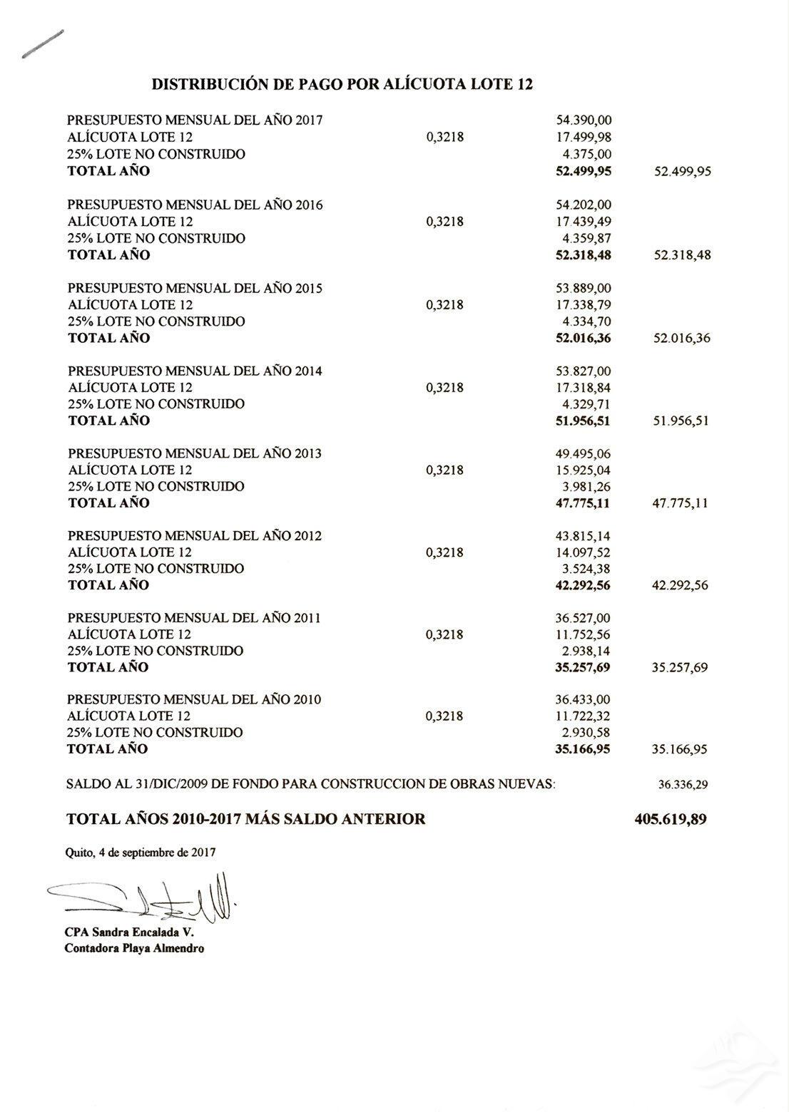 Cuadro de pago de cuota extra
